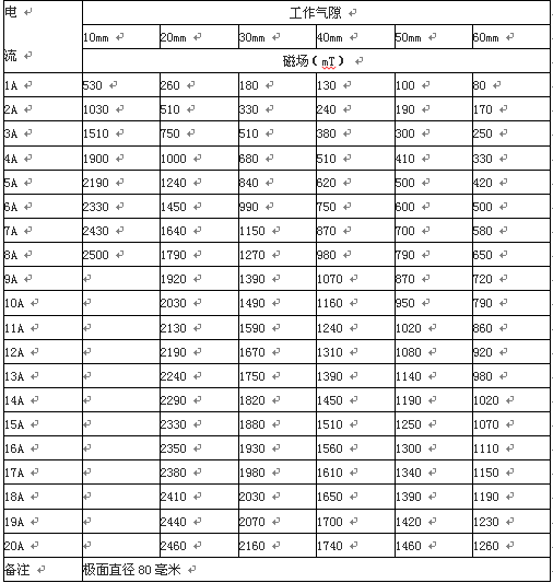5、磁場(chǎng)參數(shù)表:(供參考)